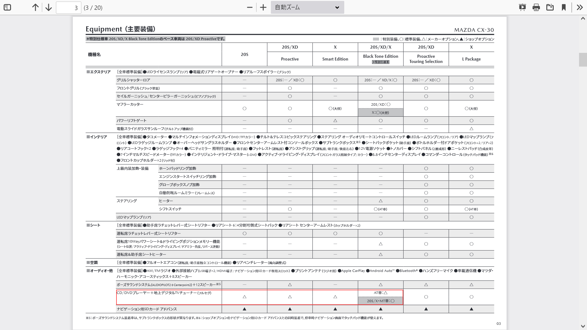 20SとSKY-Xの特別仕様車BlackToneEditionとSKY-XのL-Packegeのみに。