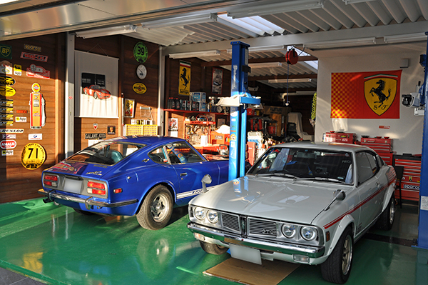 左の青いのが友人の240Z