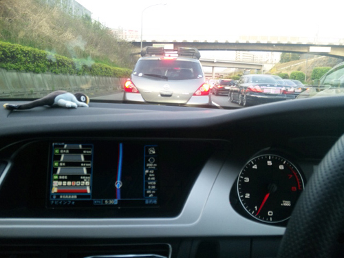 横浜町田を超えたあたりで事故があったみたいで,渋滞・・・・.