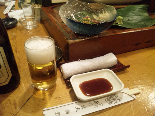 帰宅してクルマを置いてから,22時ごろに大國鮨へ.