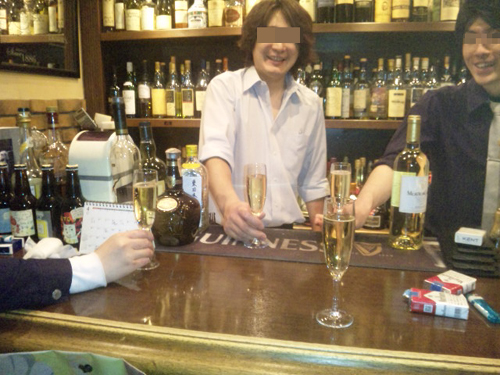 明日から新店長のTくんとたまたまカウンターに居合わせたオネーチャンとみんなで乾杯!