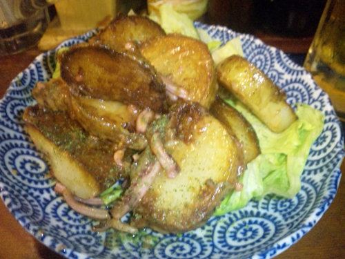 じゃがバター塩辛炒めで腹ごしらえ.