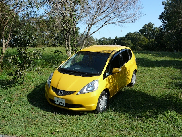 「はつみつ」のような黄色いFITです。