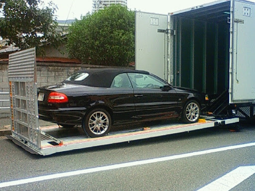 荷物はトラックで、人間は飛行機で、そして愛車C70はキャリアカーでの引っ越しとなりました。
