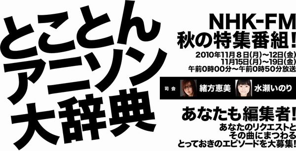 NHK-FMで10日間にわたり「とことんアニソン大辞典」を放送