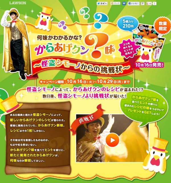 ●下野紘さんが怪盗シモーノに!ローソンのキャンペーン『からあげクン?味~怪盗シモーノからの挑戦状~』が10/16よりスタート