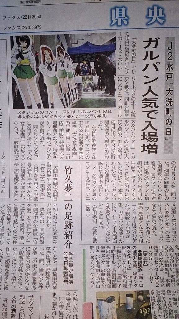 【ガールズ&パンツァー】水戸ホーリーホック『大洗町の日』のホーム東京V戦がガルパンとのコラボ効果で例年の約3倍の入場者増であったもよう! おまいらGJ!(`・ω・´)b【茨城新聞】