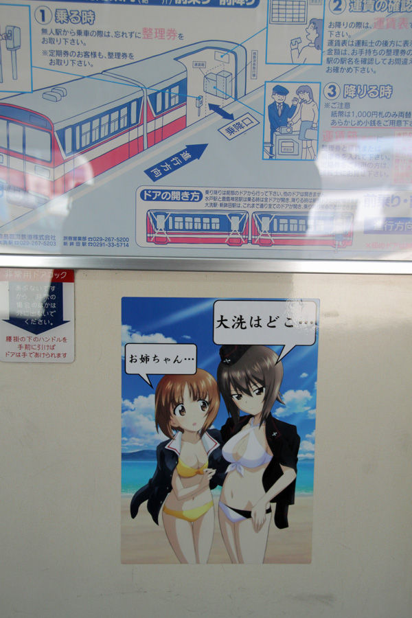 【ガールズ&パンツァー】『大洗あんこう祭』のスペシャルイベントで特製ステッカーをプレゼント! & 鹿島臨鉄『痛電車』2号の外観と車内…そして車窓から見える「やだもー!」再び!