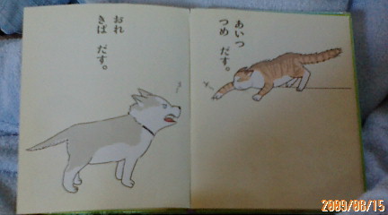 ねこ と あひる が 力を合わせて