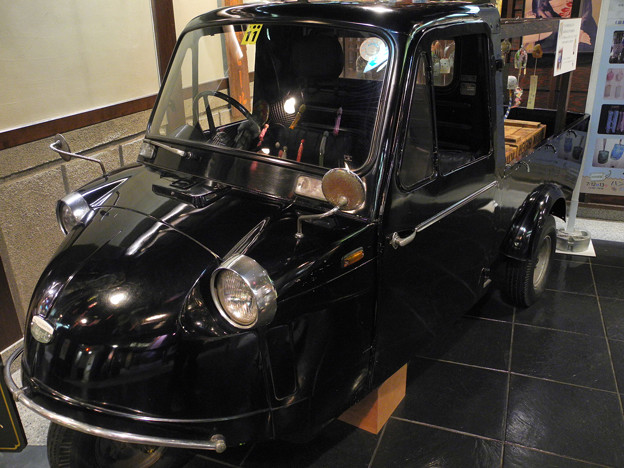ミゼットもさりげなく展示 これは丸いハンドル式でした
