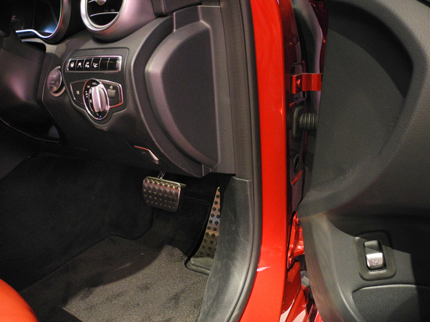 ドアヒンジも太い 国産のソレとは全く違う造り アルミペダルはAMGライン車とC250Sportsに装備