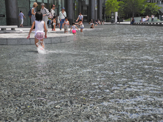 撤収前にグランフロントの水場で暑いから子供達がいっぱい 見てたらアキないですね