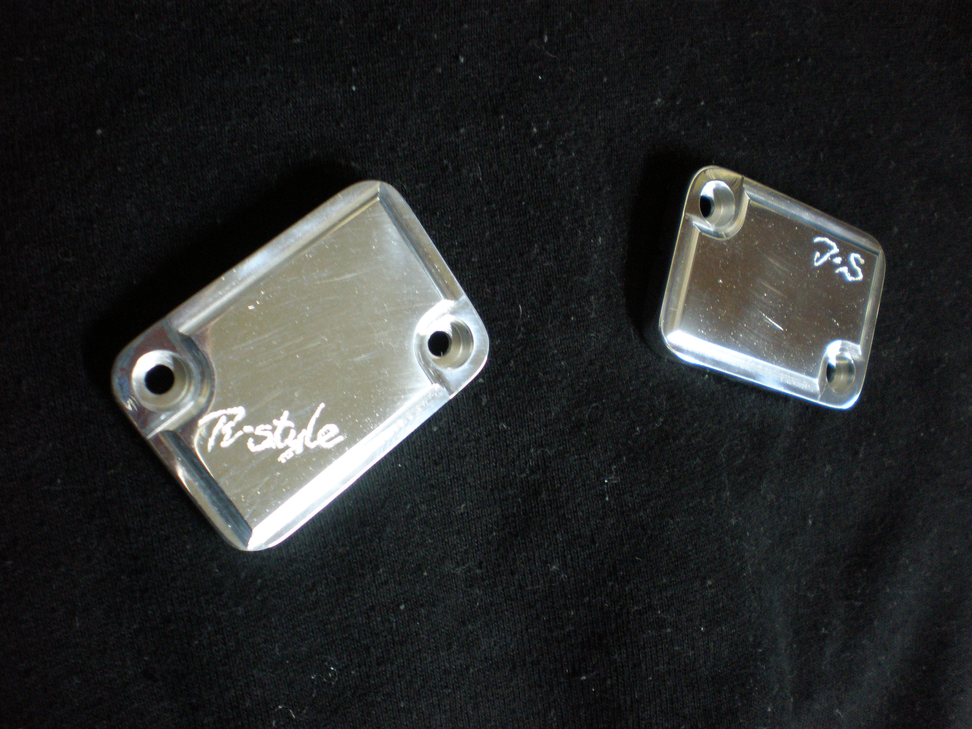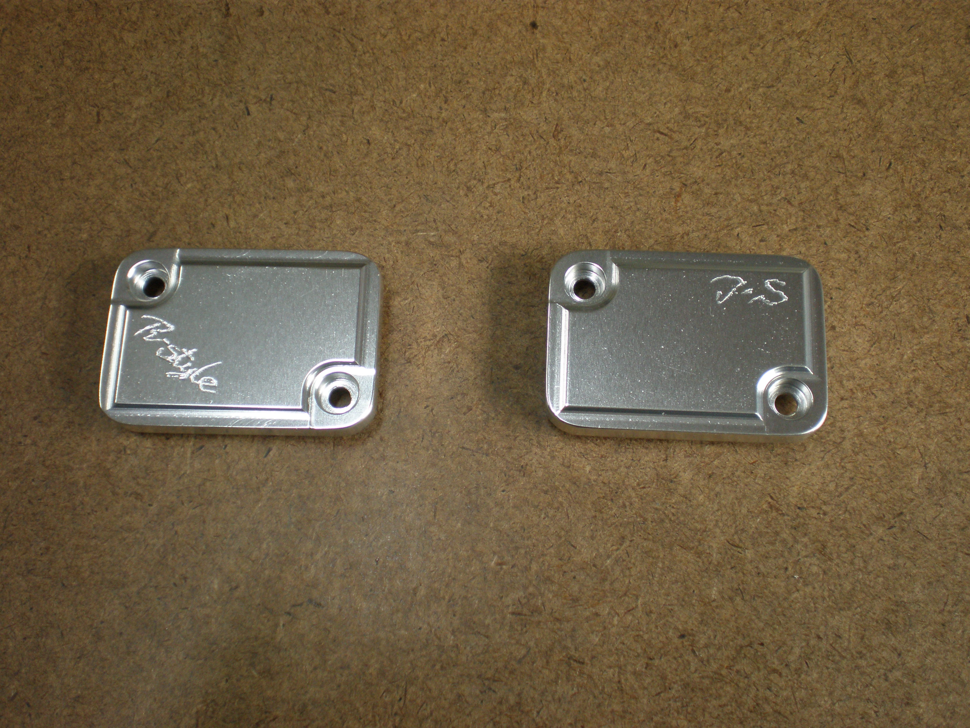 左右ありますので、ハンドメイドのワンオフ感・高級感を楽しんで頂く為に、左ブレーキ側に「R-style」、右側にオーナー様のイニシャルをそれぞれ彫刻しました。
