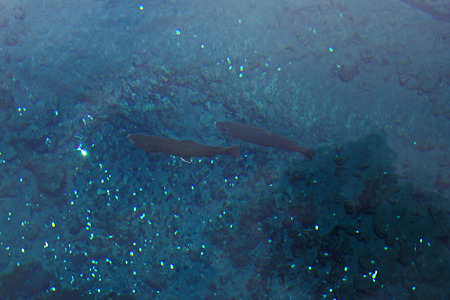 水深10m以上ありますが透明度が高いので、底の方にいるヤマメやニジマスも