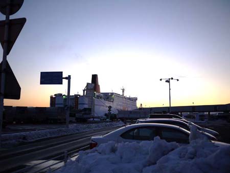 さて、今日は出発の日。待ちに待った?19時間フェリー耐久のスタートだ・・汗)。