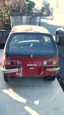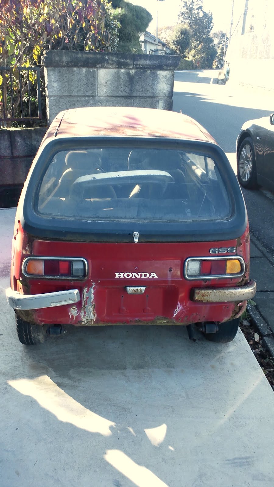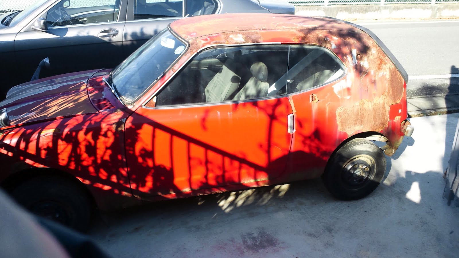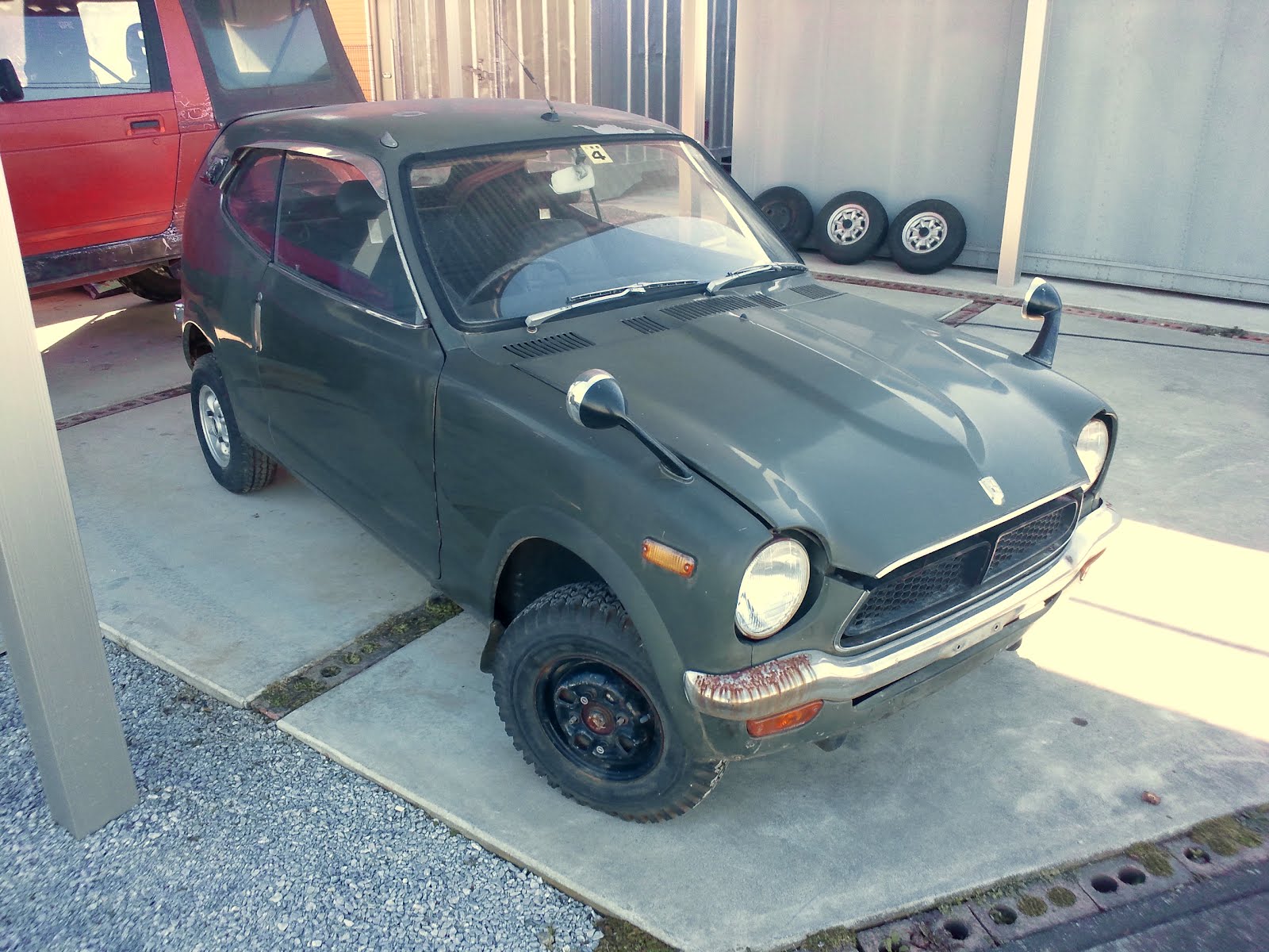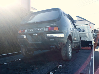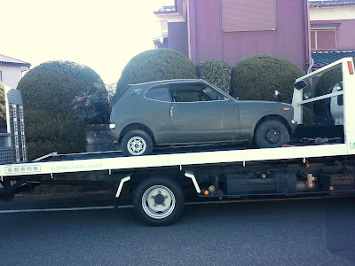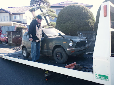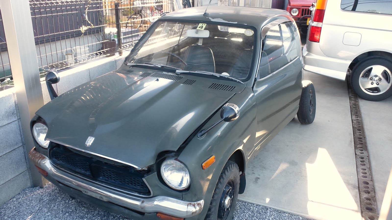 電話で聞いた道順の通りに進むとちっこいクルマを発見。おー、これかぁと少し感動。