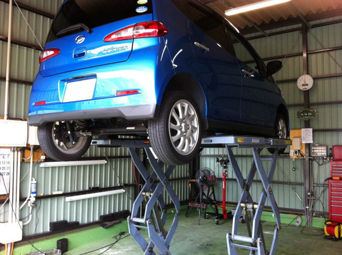 こんな高さまでジャッキアップすると迫力あるなあ。エルグランドとか持ち上げたりしたら凄そう。