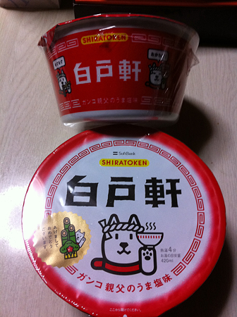 エミフルのソフトバンクで携帯を見せるだけで貰いました塩ラーメン( ´ ▽ ` )ノ