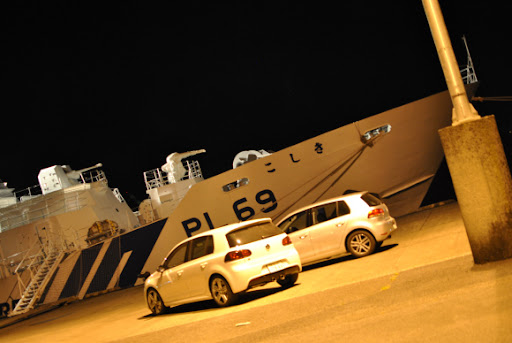 で、今回は谷山港にある海上保安部巡視船艇こしきの前で (笑