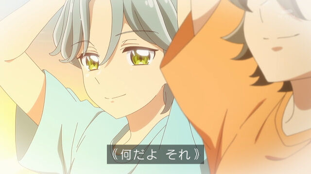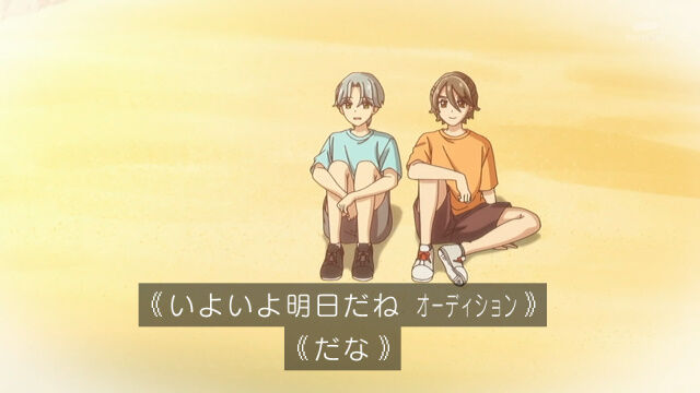 海辺でカイトを見つけたうたは、カイトに笑っていてほしい、と歌いかけます。やがて「カズマ」という親友のことを話し始めるカイト。カイトをオーディションにさそい、アイドルになるきっかけを作ってくれたカズマでしたが、オーディションに合格したのはカイトだけで、カイトがデビューのために街を離れて以来、再会することができずにいました。