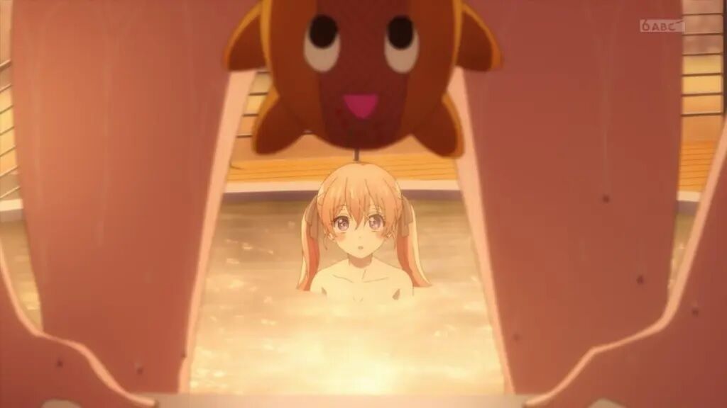 一方、外のお風呂を満喫する凪のもとへエリカがやってくる。