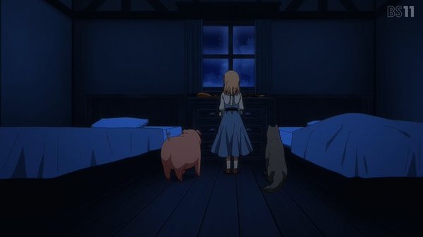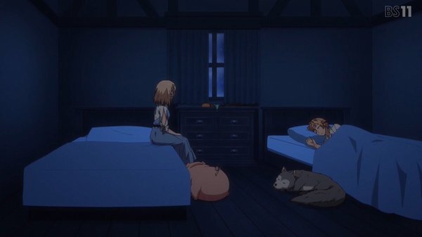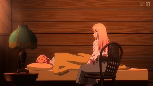 B:夜更かしをするビオラにザントマンのおとぎ話を聞かせるアリッサ。