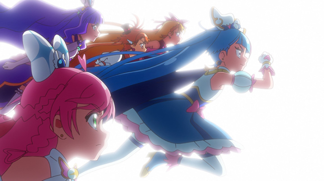 待ちかまえていた無数のランボーグをウィングとバタフライが引き受け、その先にあらわれた巨大ランボーグを食い止めるためにマジェスティが残り、最深部にたどり着いたのは、スカイとプリズムでした。
