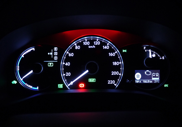 話しは戻って、CT200hではスポーツモードにするとメーター内とスポットライトが赤い照明に変わり、タコメーターが表示されます。